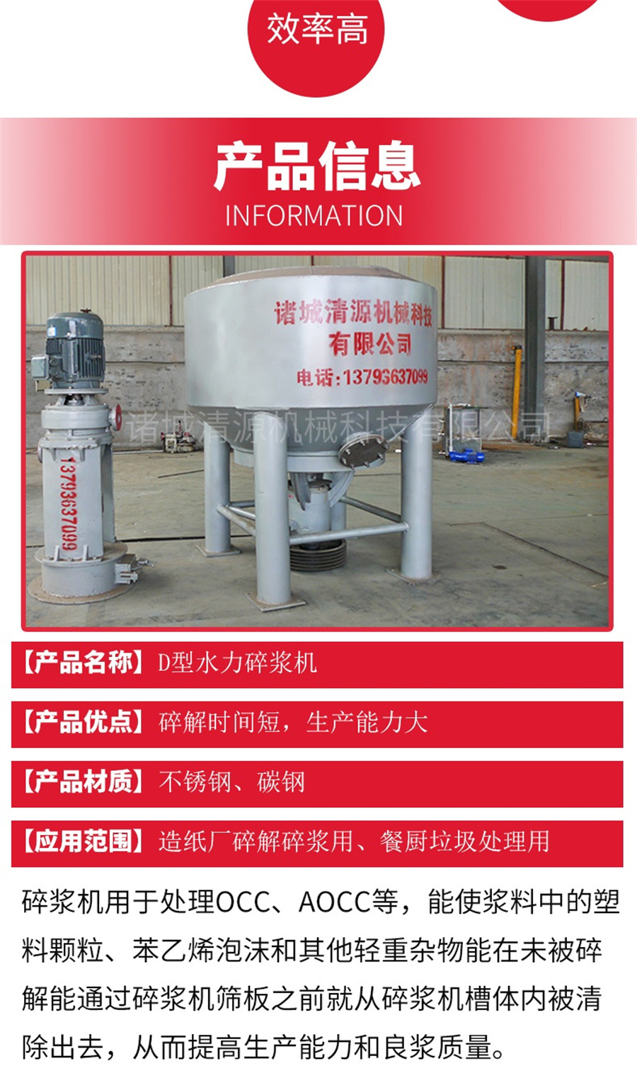 此外,我公司不僅生產(chǎn)D型水力碎漿機(jī),還生產(chǎn)高濃水力碎漿機(jī)、地埋式污水處理設(shè)備、氣浮機(jī)、污泥壓濾機(jī)、固液分離設(shè)備、造紙?jiān)O(shè)備等其他設(shè)備,歡迎咨詢訂購!
