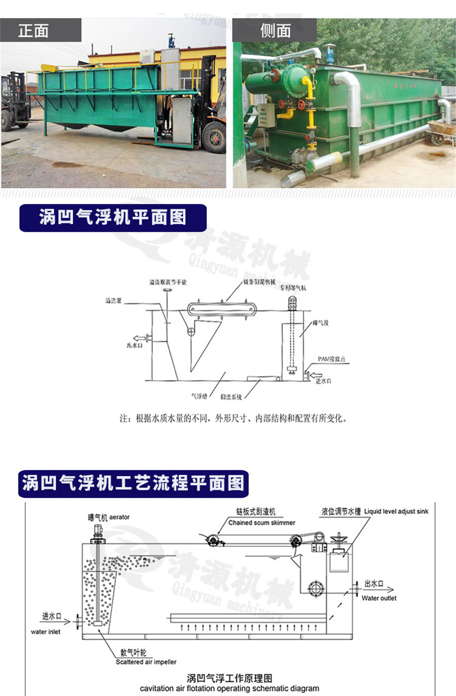 此外,我公司不僅生產(chǎn)渦凹?xì)飧C(jī)、還生產(chǎn)豎流式溶氣氣浮機(jī)、地埋式污水處理設(shè)備、污泥壓濾機(jī)、固液分離設(shè)備、造紙?jiān)O(shè)備等其他設(shè)備。