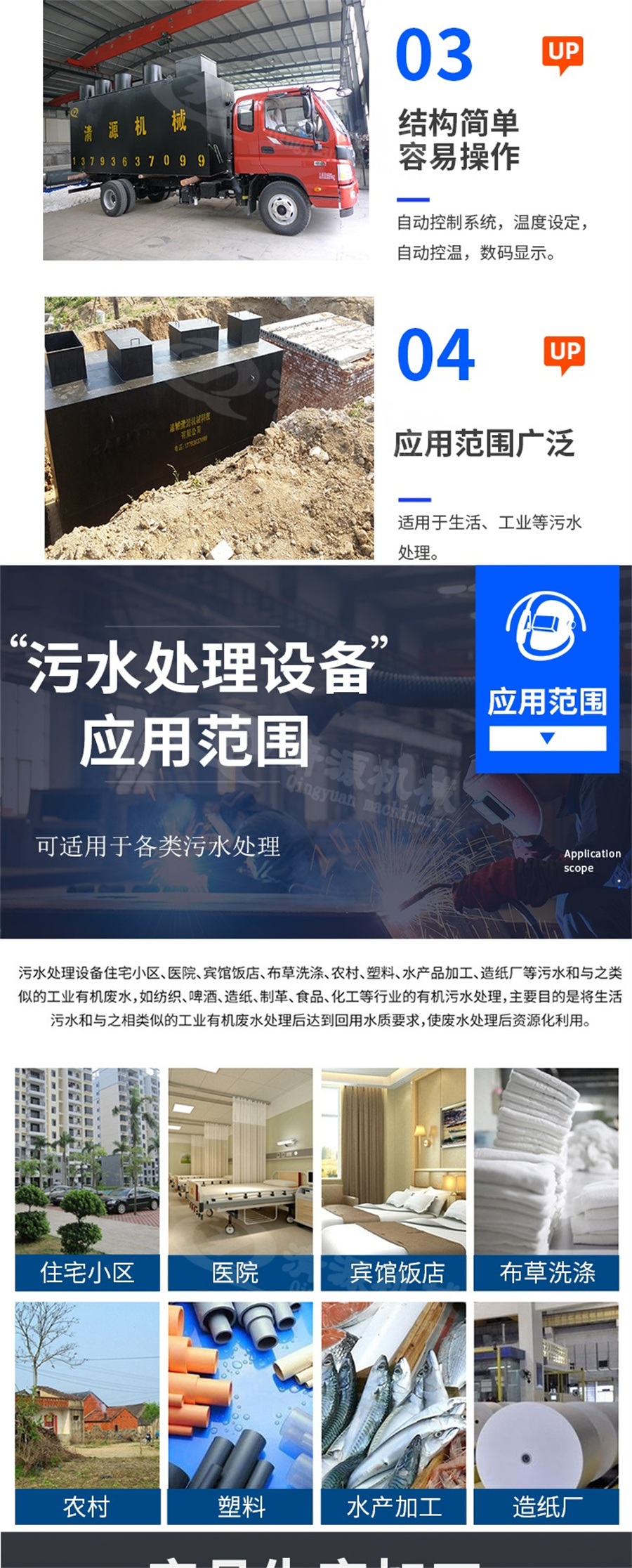 三、一體化生活污水處理設(shè)備應(yīng)用范圍:適合用于住宅小區(qū)、辦公樓、賓館、飯店、機關(guān)、部隊、醫(yī)院、高速公路、鐵路、工廠等生活污水和與之類似的屠宰、紡織、啤酒、造紙、制革、食品、化工等行業(yè)中小型規(guī)模工業(yè)廢水的處理和回用。