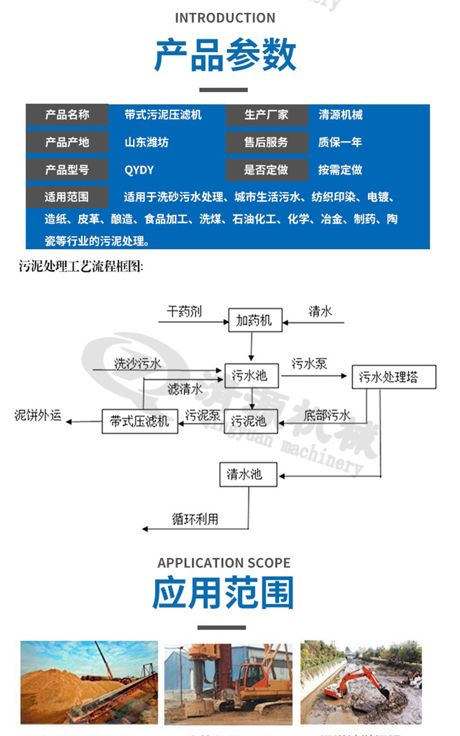 二、帶式壓濾機應用范圍: