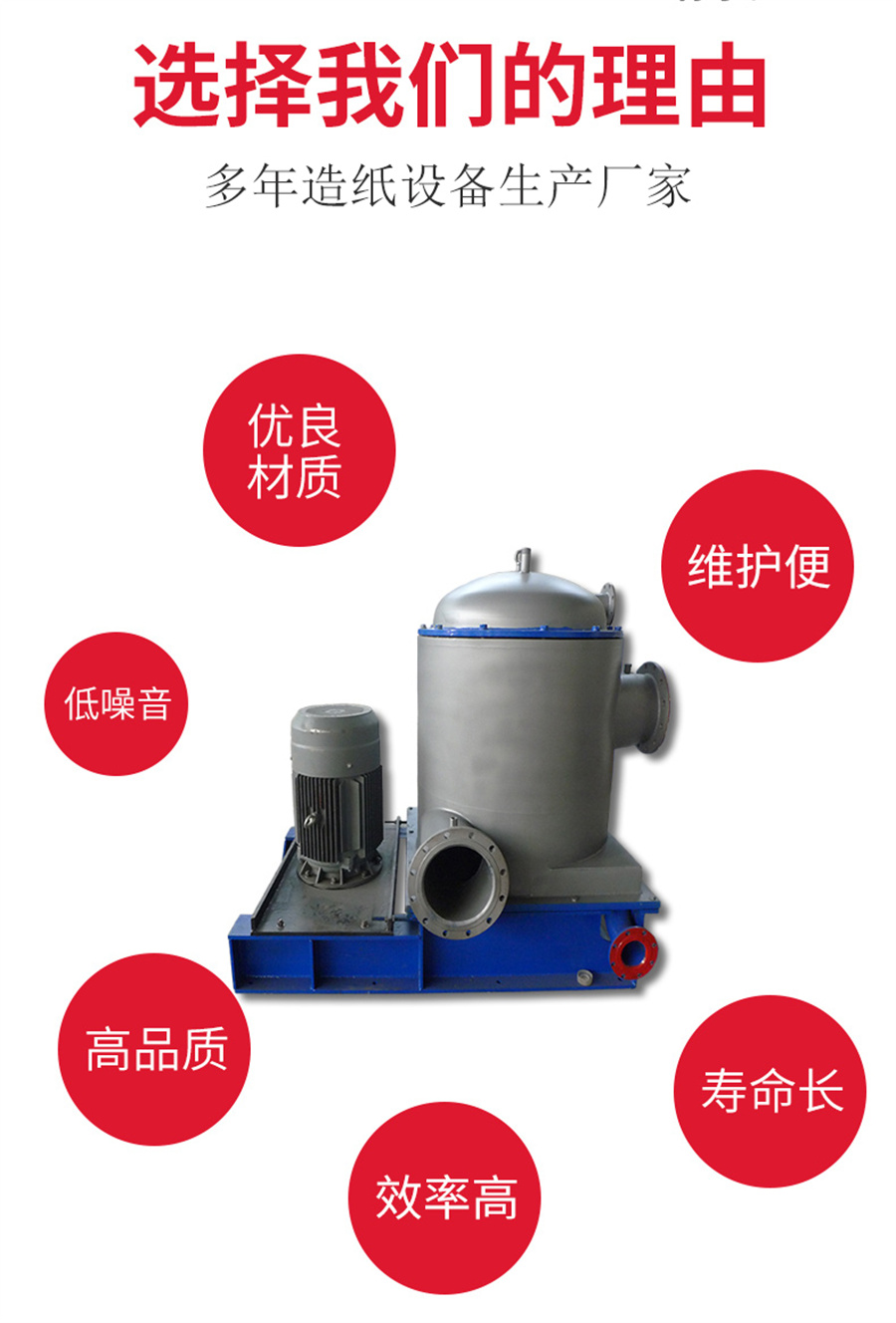 3、篩漿時不堵塞:紙漿自上而下均勻篩選,幾乎沒有增稠現(xiàn)象,雜質(zhì)始終遠離篩鼓,所以篩鼓縫不易被堵塞。